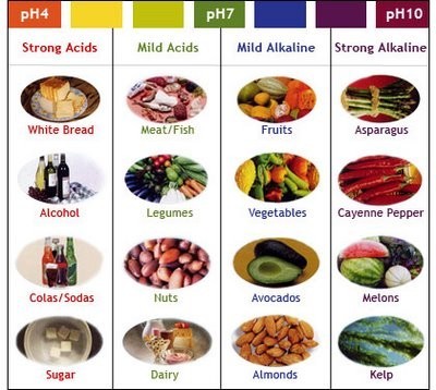 Our body's pH level is slightly alkaline, with a normal range of 7.36 to 7.44, our diet should reflect this and also be slightly alkaline. An imbalanced diet high in acidic foods such as animal protein, sugar, caffeine, and processed foods, tends to disrupt this natural balance and deplete the body of alkaline minerals such as sodium, potassium, magnesium, and calcium, leaving a person vulnerable to chronic and degenerative dis-eases. Eating more of the foods in the alkaline column and or drinking alkaline water, can bring the body back to a healthy alkaline state.